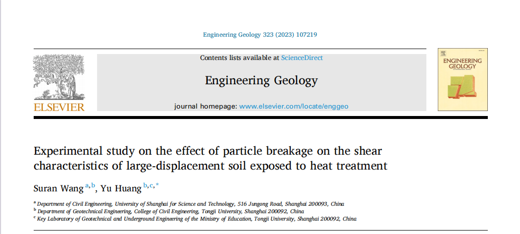[1] Wang SR, Huang Y. Experimental study on the effect of particle breakage on the shear characteristics of large-displacement soil exposed to heat treatment [J]. Engineering Geology, 2023, 323:107219. https://doi.org/10.1016/j.enggeo.2023.107219